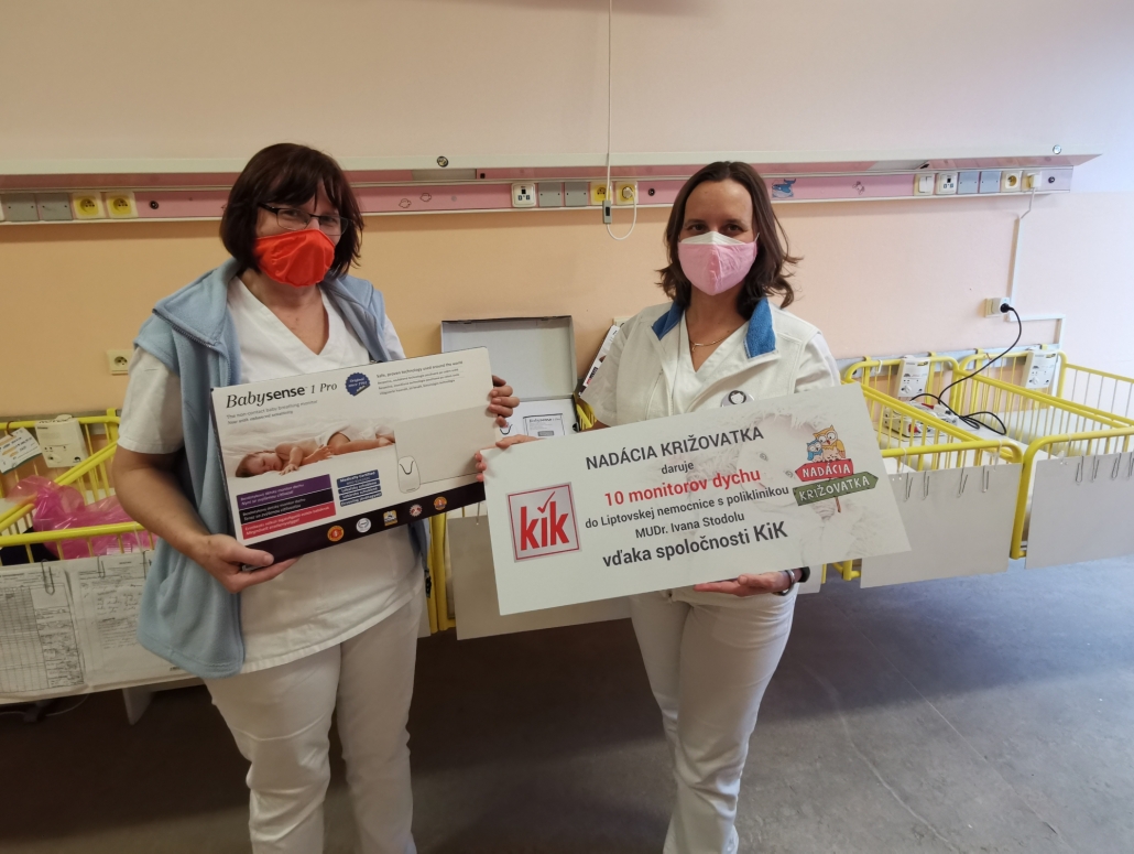 L I P T O V S K Ý M I K U L Á Š (14. 12. 2020) – Od apríla 2019 mali zákazníci spoločnosti KiK možnosť zapojiť sa do verejnej zbierky na nákup monitorov dychu. Ich používanie je jedinou osvedčenou formou prevencie Syndrómu náhleho úmrtia dojčiat SIDS, preto chce nimi Nadácia Križovatka vybaviť každé lôžko na neonatologických a pôrodníckych oddeleniach vo všetkých nemocniciach na Slovensku. Vďaka spoločnosti KiK poputovalo 10 nových monitorov do Liptovskej nemocnice s poliklinikou MUDr. Ivana Stodolu.