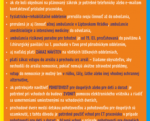 Opatrenia zavedené v našej nemocnici v súvislosti s COVID-19
